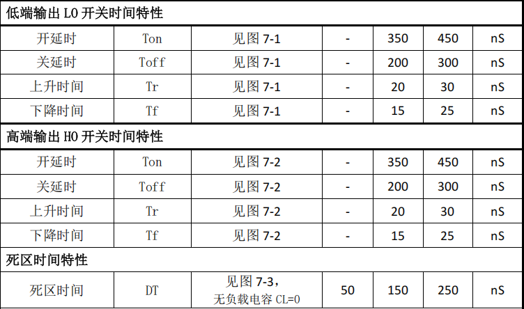 - 死区时间(DT):内部集成,典型150ns(范围50-250ns)