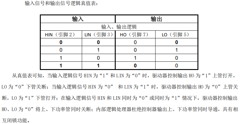 欲开通低端管(LO输出高):需设置 HIN=0, LIN=1