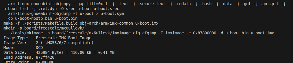 make ARCH=arm CROSS_COMPILE=arm-linux-gnueabihf- mx6ull_14x14_evk_emmc_defconfig