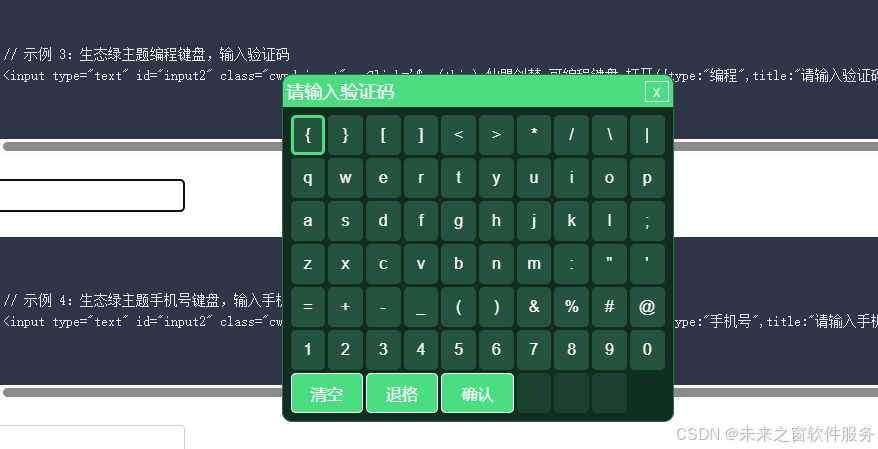 // 示例 3:生态绿主题编程键盘,输入验证码