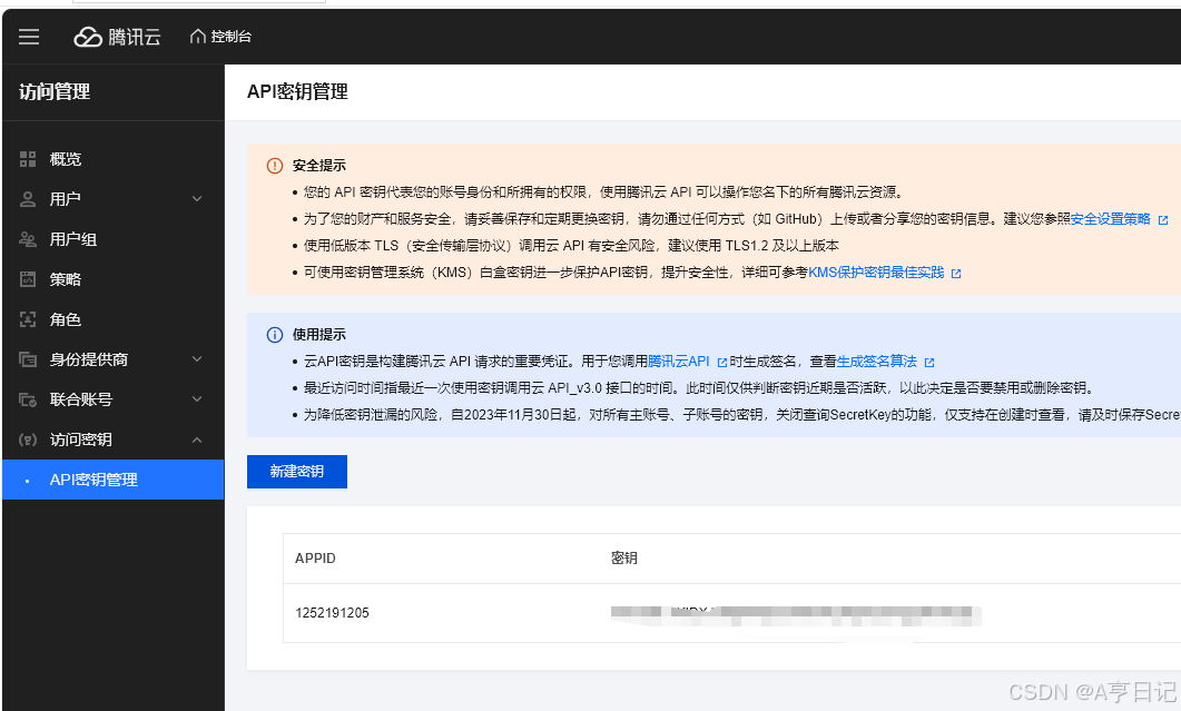 注意,申请时生成的ID,先复制,不然看不到SecrectId,不是APPID