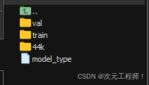 **train是训练集目录, val 是验证集目录。**44k是so-vits-svc模型的目录,我们不用管,你如果没下载这个模型,也不会有的