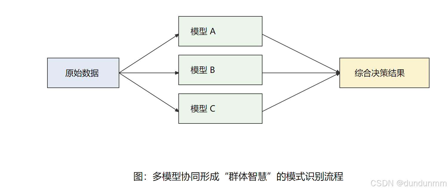 早期的模式识别系统,往往依赖单一算法或单一模型。 但现实世界的数据复杂、多变、不完美,单一模型很容易"看走眼"。