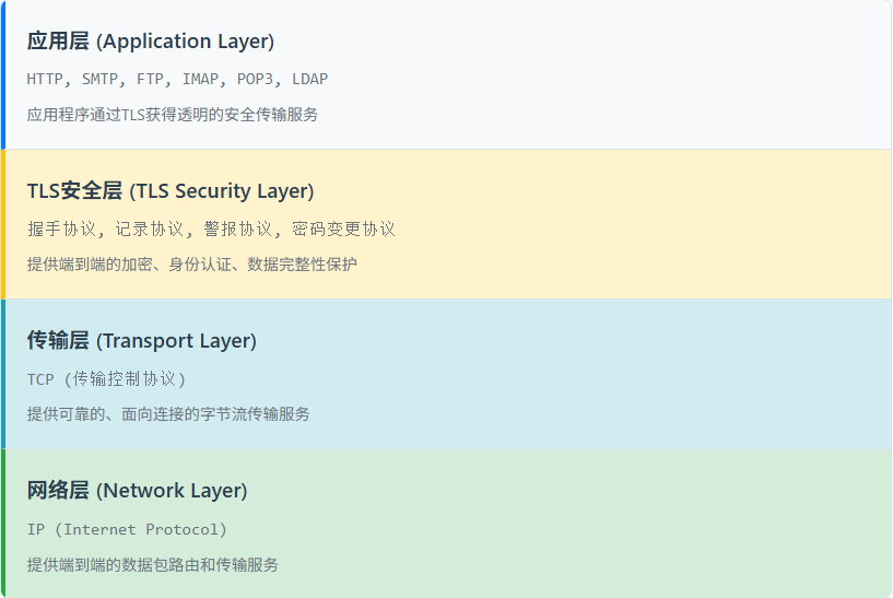 TLS (Transport Layer Security,传输层安全性协议) 就是为了解决这个问题而诞生的。它是一种加密协议,目标是在两个通信应用程序之间提供隐私和数据完整性。它的前身是 SSL (Secure Sockets Layer,安全套接层)。