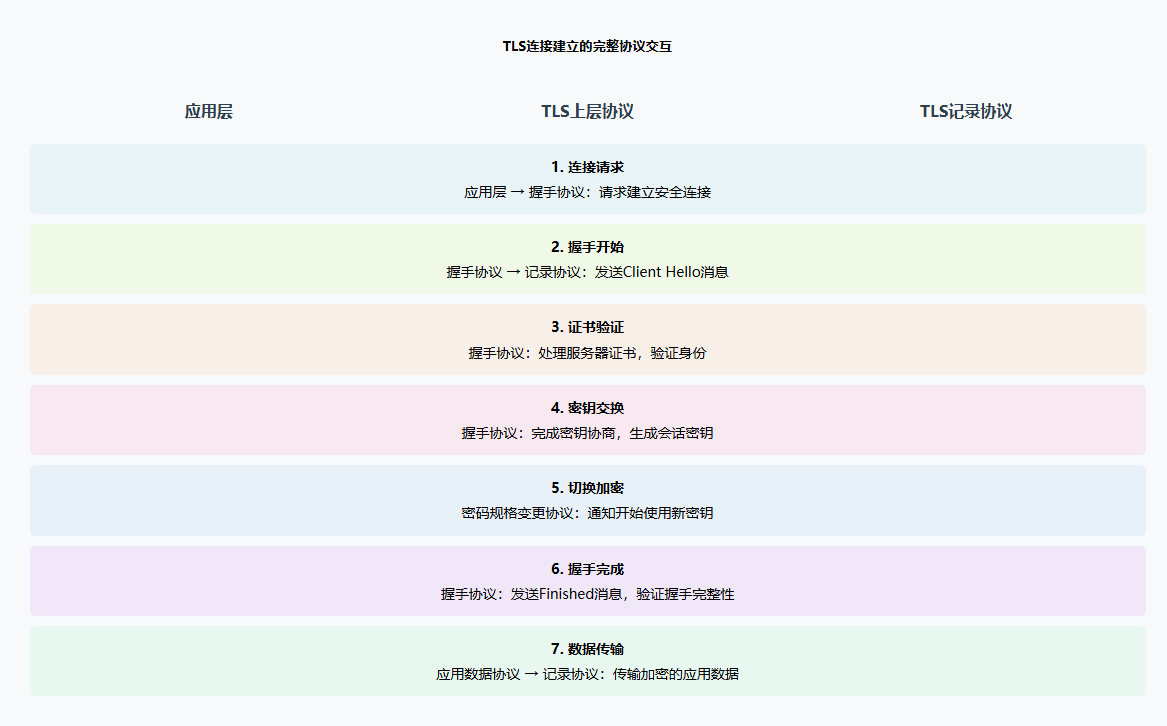 TLS记录协议是TLS的底层协议,负责使用对称密码对消息进行加密,为上层协议提供安全的传输通道。