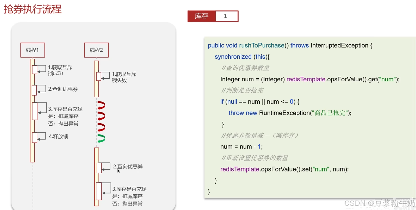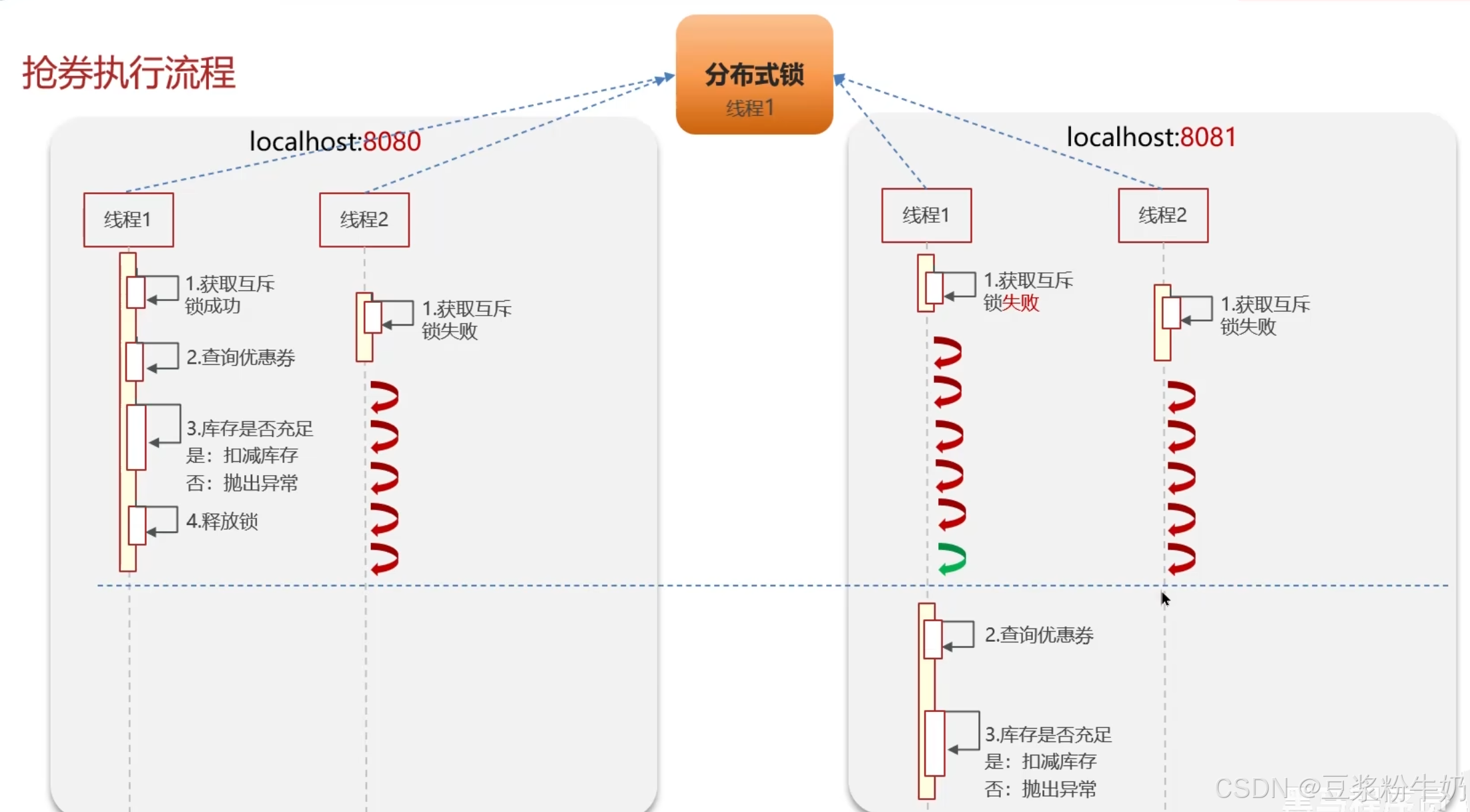 上面的代码就不合适了,这时候使用redis分布式锁。