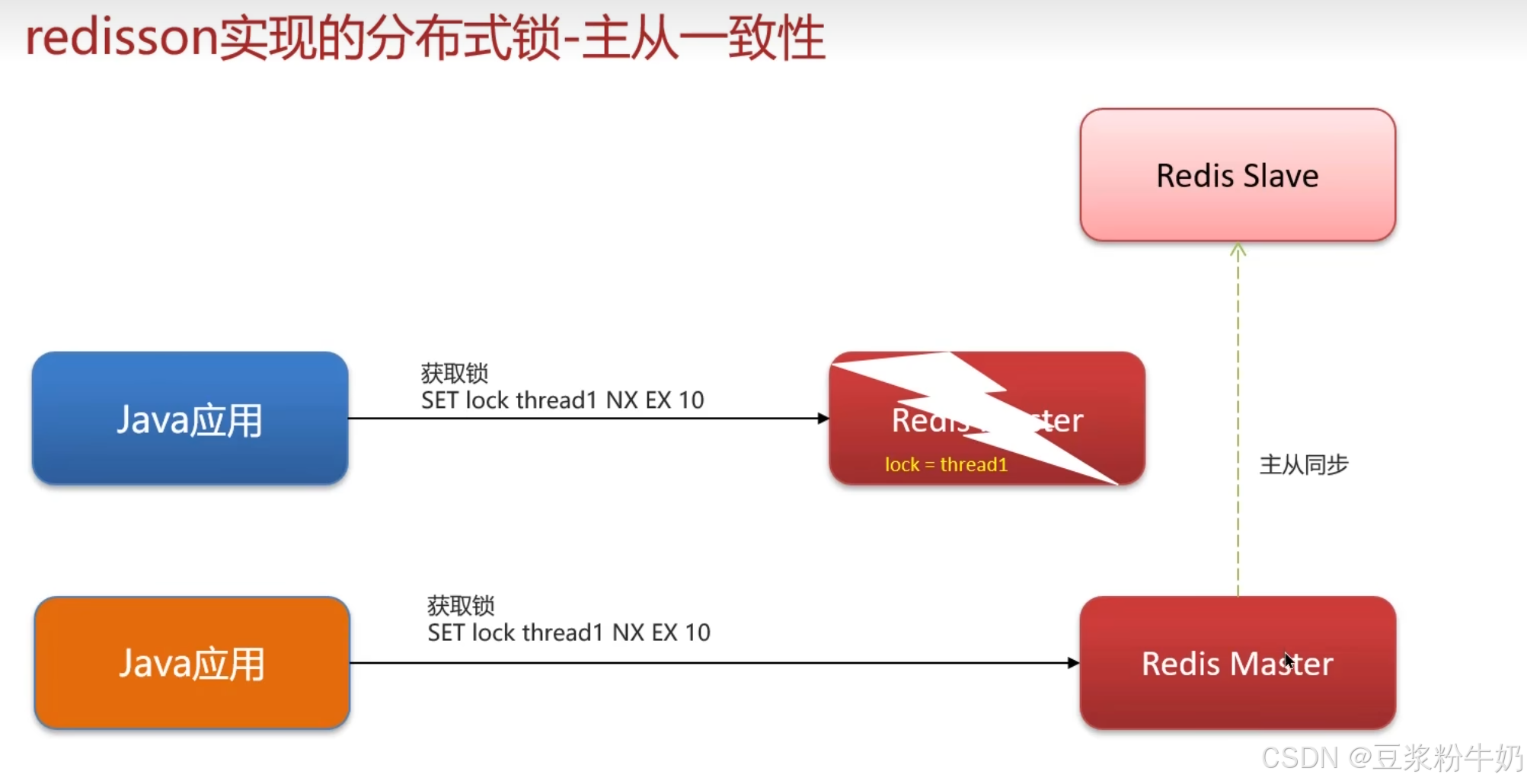 加锁的逻辑没有同步到从节点,这个时候又有其他客户端执行加锁逻辑,这就不行了。