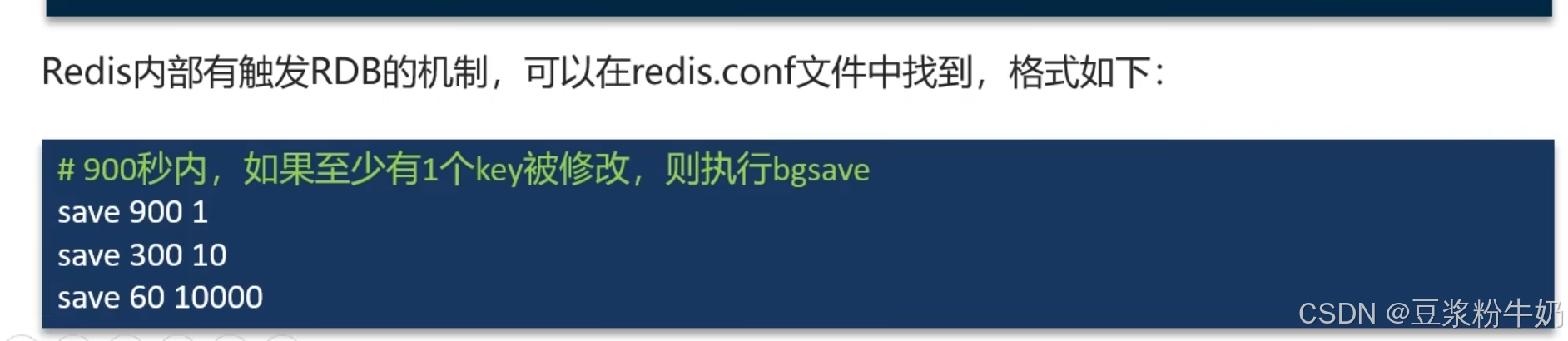 bgsave开始时会frok(复制)一个子进程 ,子进程共享内存数据,完成frork后读取内存数据并写入RDB文件。