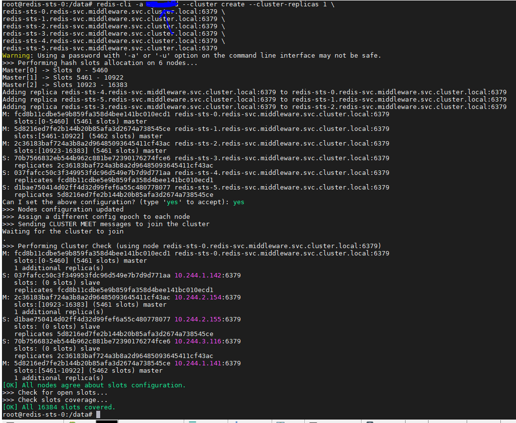 root@redis-sts-0:/data# redis-cli -a 密码 -c