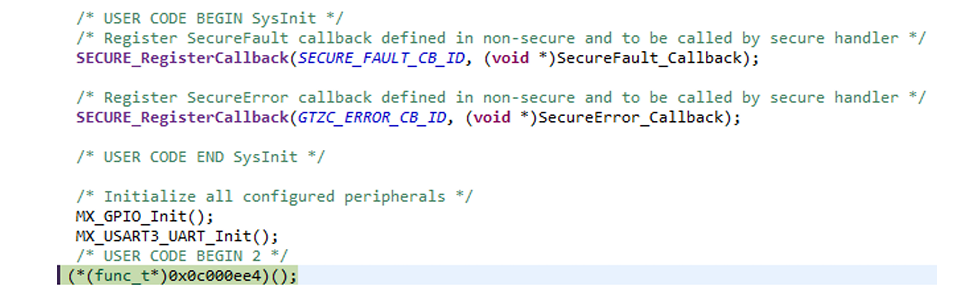 码,例如,我们使用地址直接调用Secure工程中的代码。