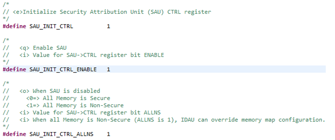 在partition_stm32h563xx.h 里使能 SAU,你需要将SAU_INIT_CTRL_ENABLE 置