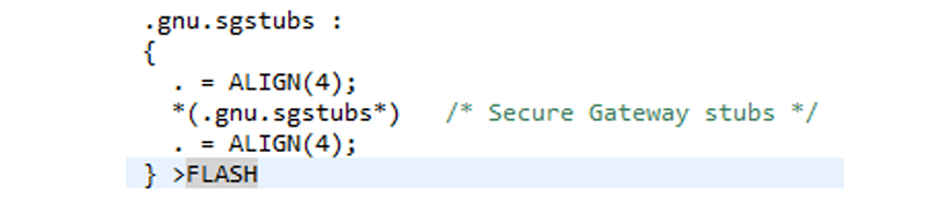 然后你将以前放入FLASH_NSC的代码放入正常的Secure分区里,如下