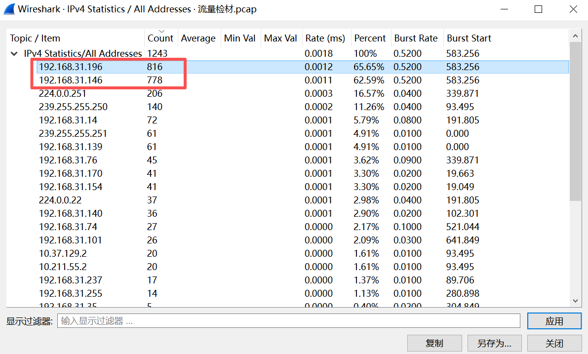 参考解析: 1.先看统计的次数,发现192.168.31.196和192.168.31.146这两个IP出现的次数最多。所以就可以大概率去判断这两个IP,一个是攻击机,一个是被攻击机。