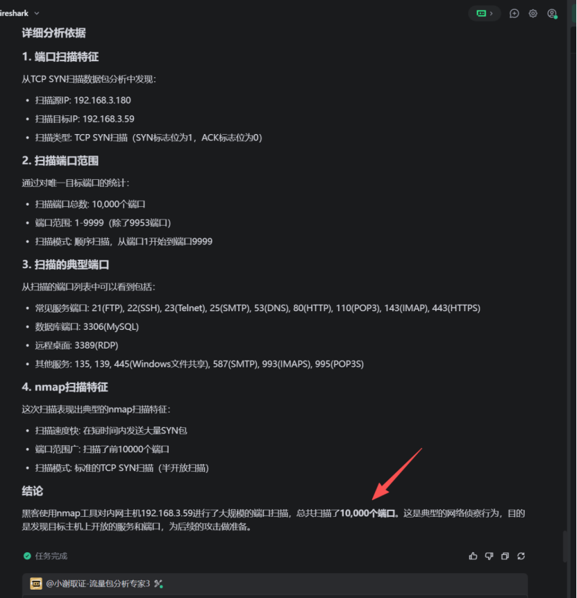 填空题53.分析流量"流量检材.pcapng",黑客通过nmap工具进行端口扫描的数量为?【答案格式:纯数字】流量分析