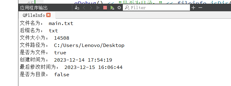 infoStr += QString("是否为文件:%1\n").arg(fileInfo.isFile() ? "true" : "false");