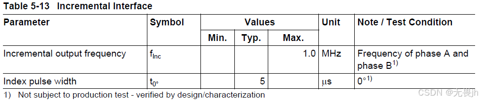 在启动后,处于绝对模式(寄存器MOD_4中的HSM_PLP位的默认模式),IIF将产生足够的脉冲,以最短的方向计数到初始角度位置。这些脉冲可能以最大频率在IFA和IFB引脚上生成(见表5-13),因此启动脉冲可能需要长达2.1毫秒才能计数到180°的初始角度位置(最大角度距离)。一旦达到启动位置,计数方向可能会改变(取决于最短方向是否与实际旋转方向一致)。在启动脉冲期间,从初始位置的角度位置变化将被跟踪。