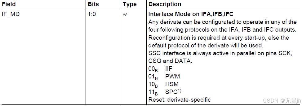 通过SSC接口(IF_MD = "01")在MOD_4寄存器中可以选择脉冲宽度调制(PWM)接口。