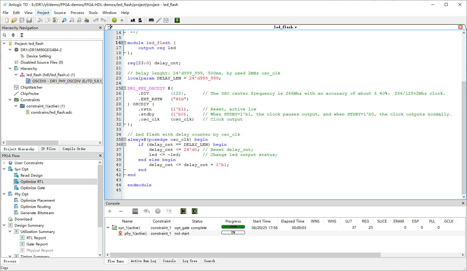 (1)使用DR1_PHY_OSCDIV原语提供的osc_clk(2MHz)作为LED的参考时钟。