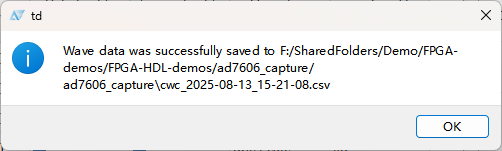 点击当前窗口右上角"File",选择"Export Wave Date",导出波形数据.csv文件。导出完成后,会弹出窗口显示导出文件的路径以及名称。