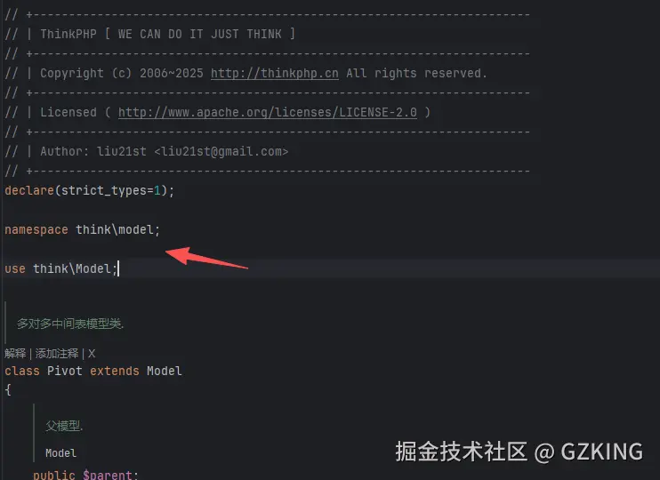 think-orm包,Pivot类的真实文件路径是:vendor/topthink/think-orm/src/model/Pivot.php