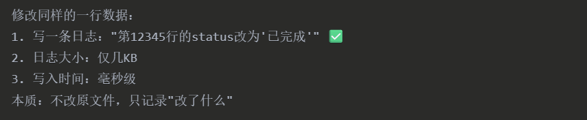 - 事务日志 = 订单系统(记录所有变更)