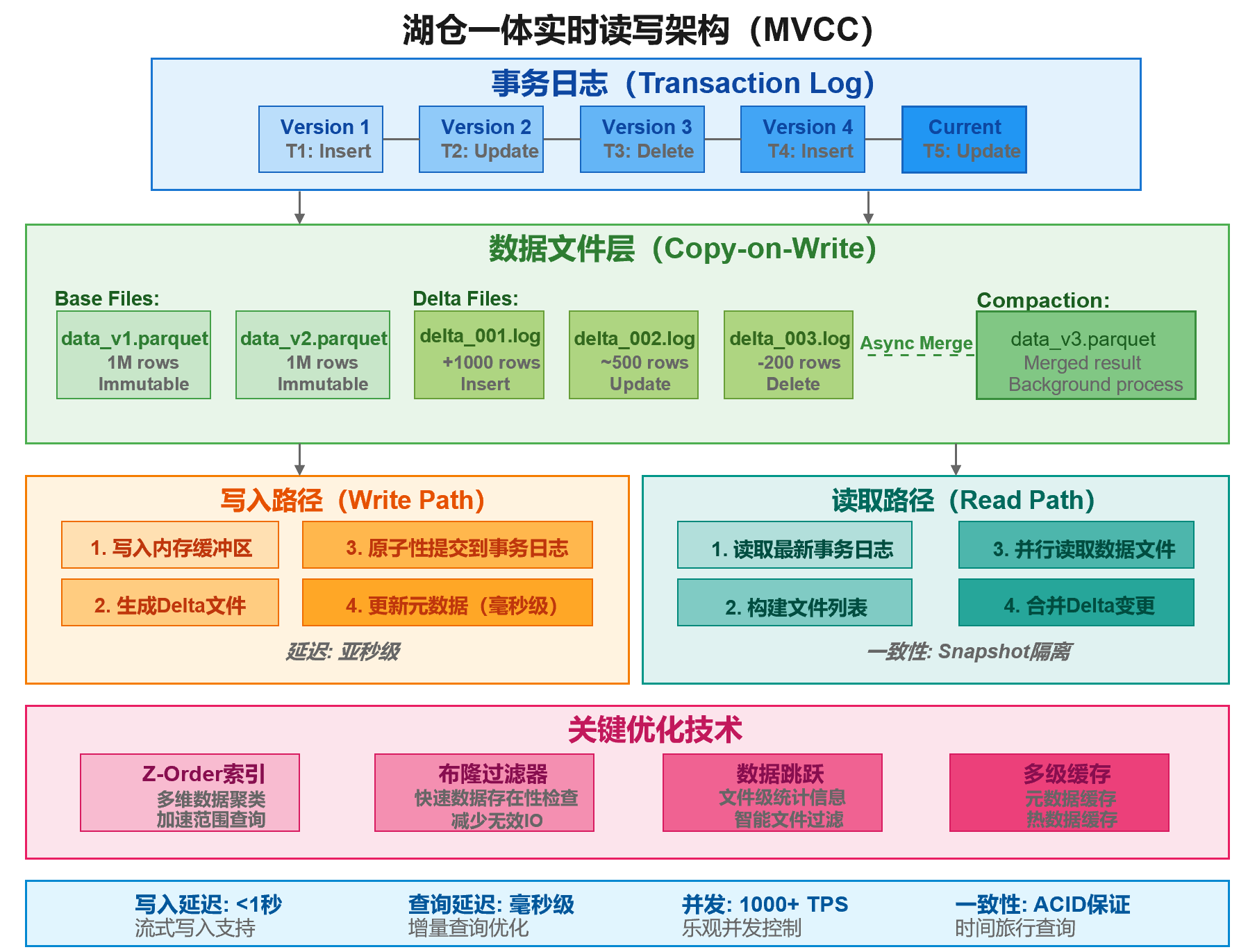 后台压缩(Compaction)- 自动优化图中右侧的"Async Merge"展示了后台压缩过程: