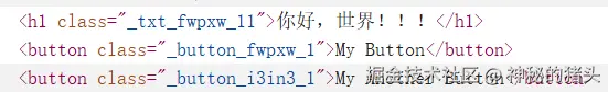 .button转换成一个全局唯一的字符串。通常格式是文件名_类名__哈希值(例如_button_fwpxw_1)。 - 映射导出 :它生成一个 JS 对象(上面的