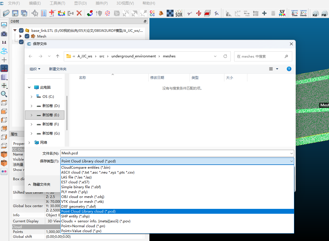 可以看到全局点云坐标范围,以SW模型原点为参考坐标