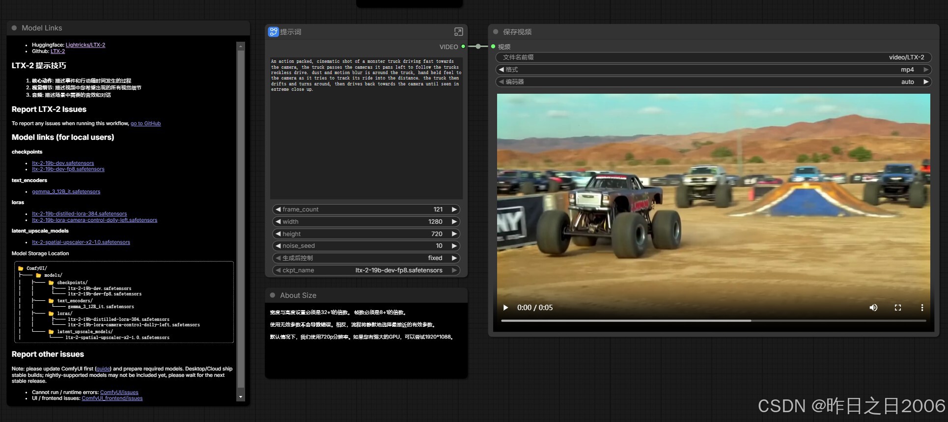 支持文生视频和图生视频,进入对应的工作流,输入提示词/上传图像输入提示词,设置宽高等参数,运行即可。