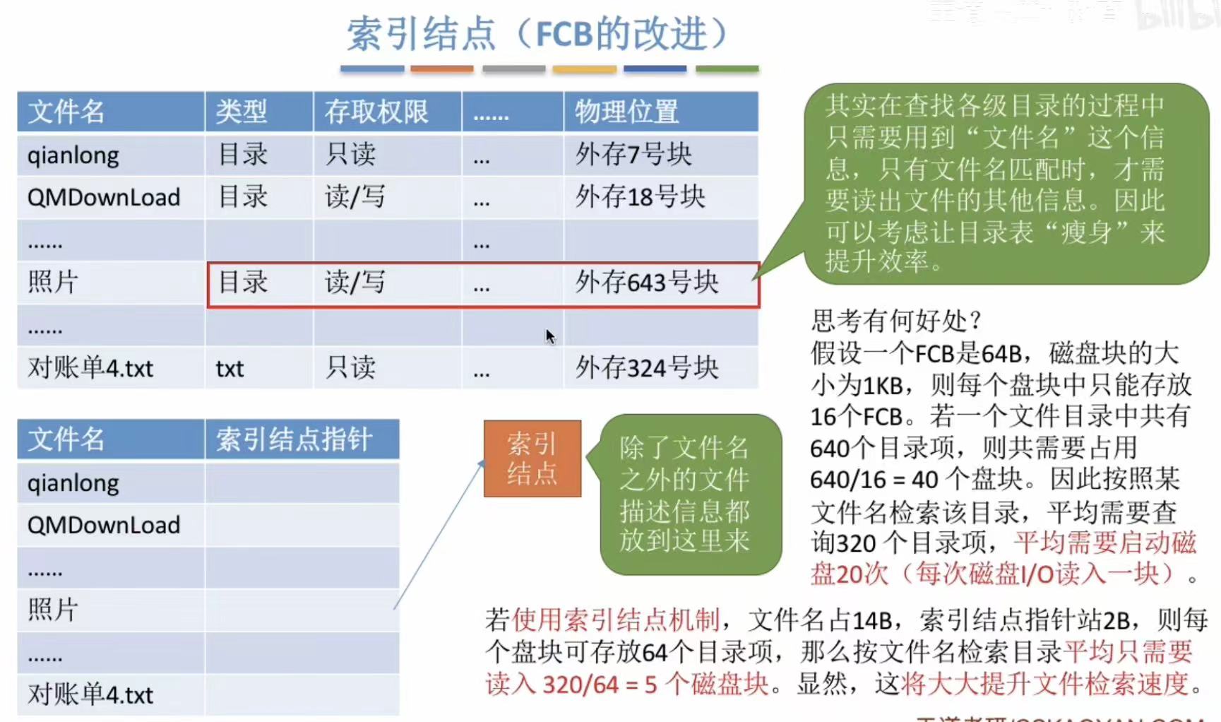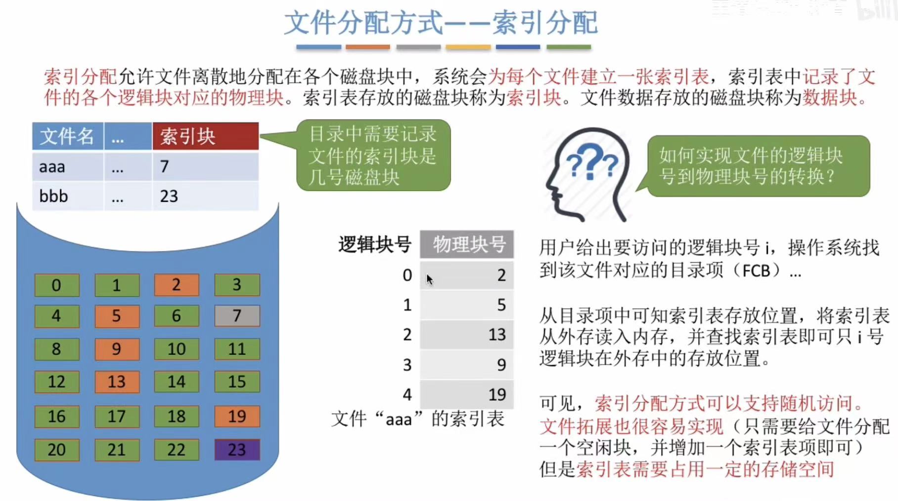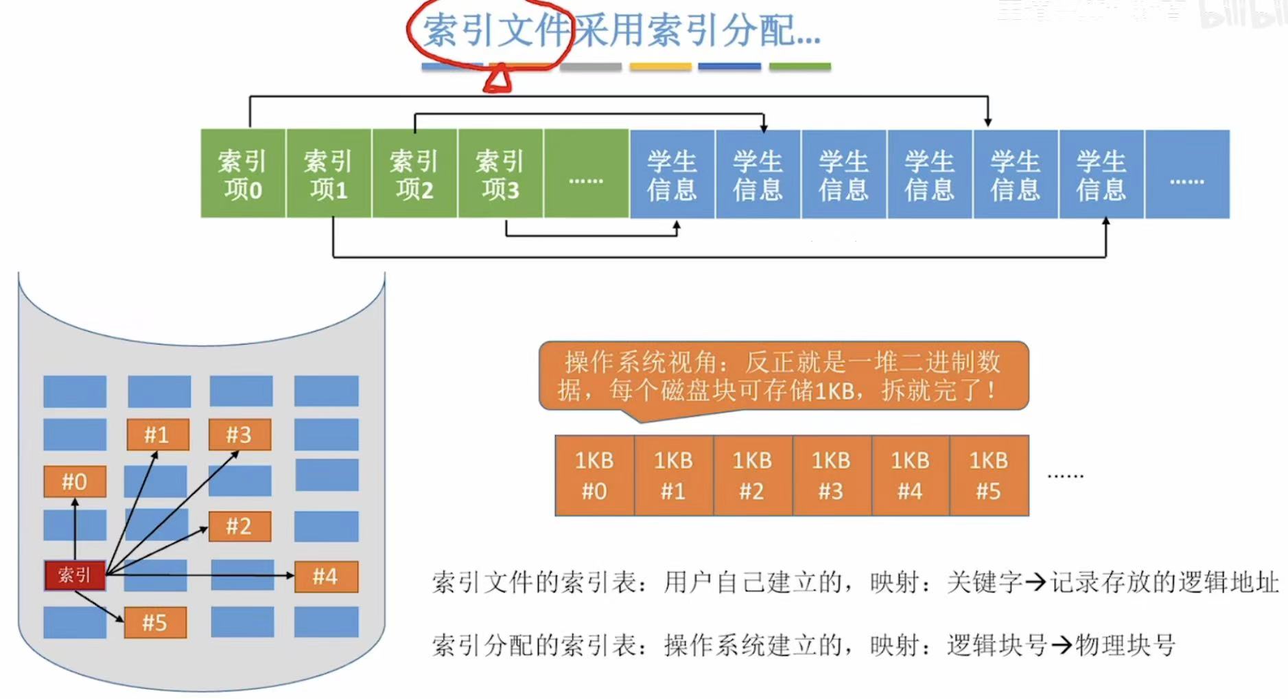 有索引两个字一定会有索引表,索引块就是索引表放在了哪块里,就直接去那块找目录查自己想要的文件在哪个物理块里。