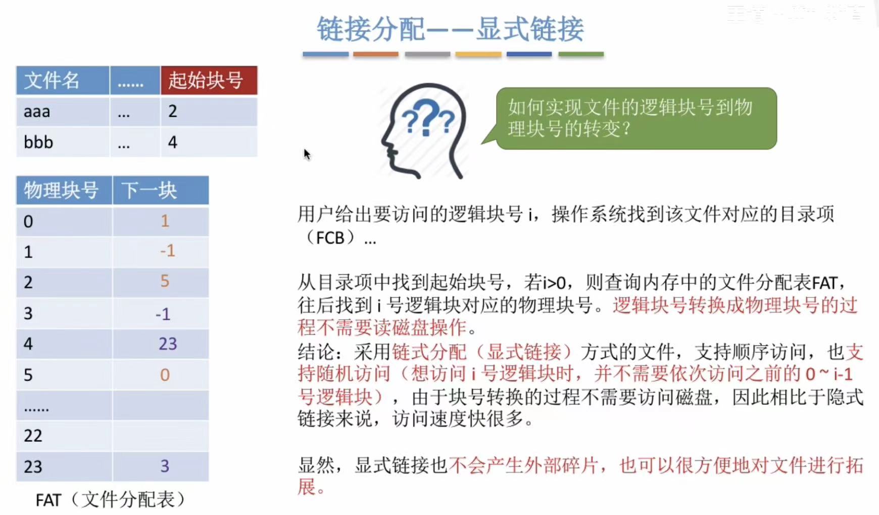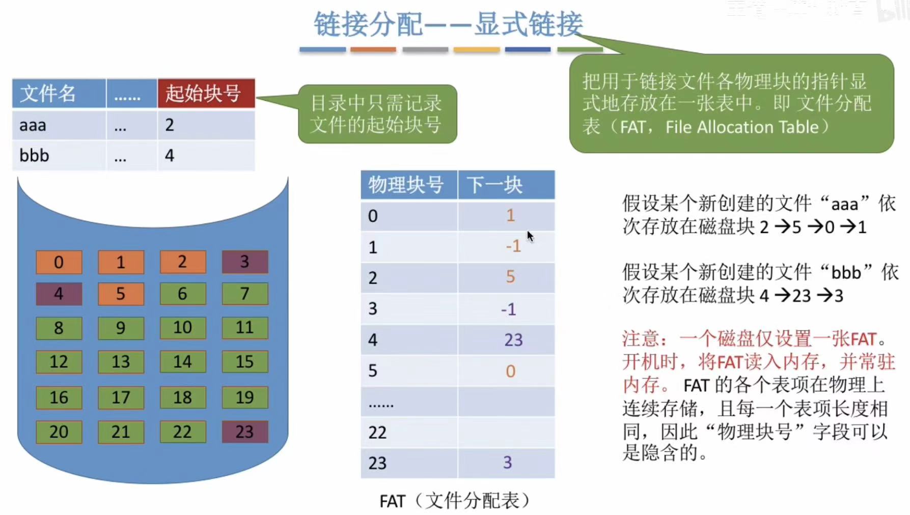 多了一个FAT表,知道谁指向谁了,所以叫做显式链接。