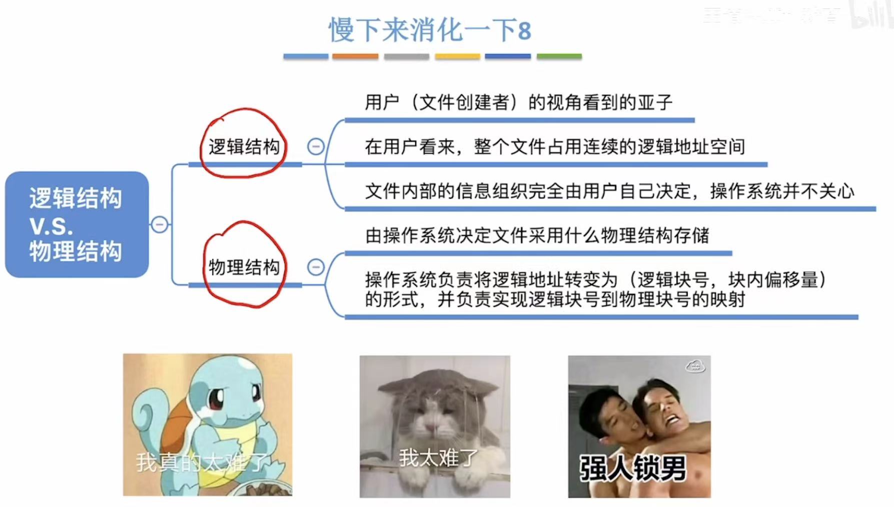 - 逻辑结构:我们看得到的,文件对我们来说看得见,所以逻辑结构都是XX文件