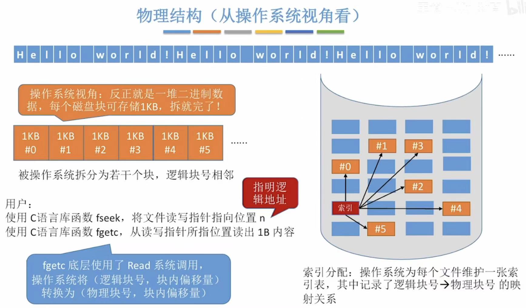 很多块,就会出现连续不连续的问题,就会出现碎片的问题,还会涉及到文件怎么存的问题。