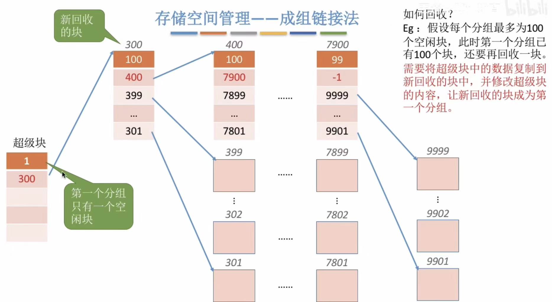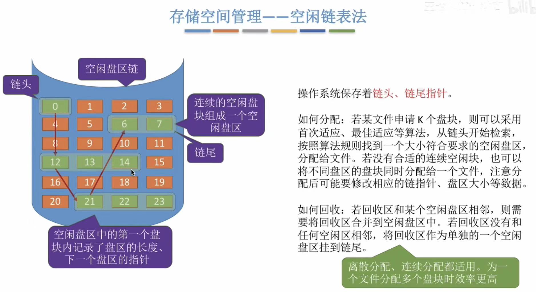 想拓展文件,就直接放进一个空闲块里然后用指针链接上就可以,避免了空闲块的空间浪费问题。