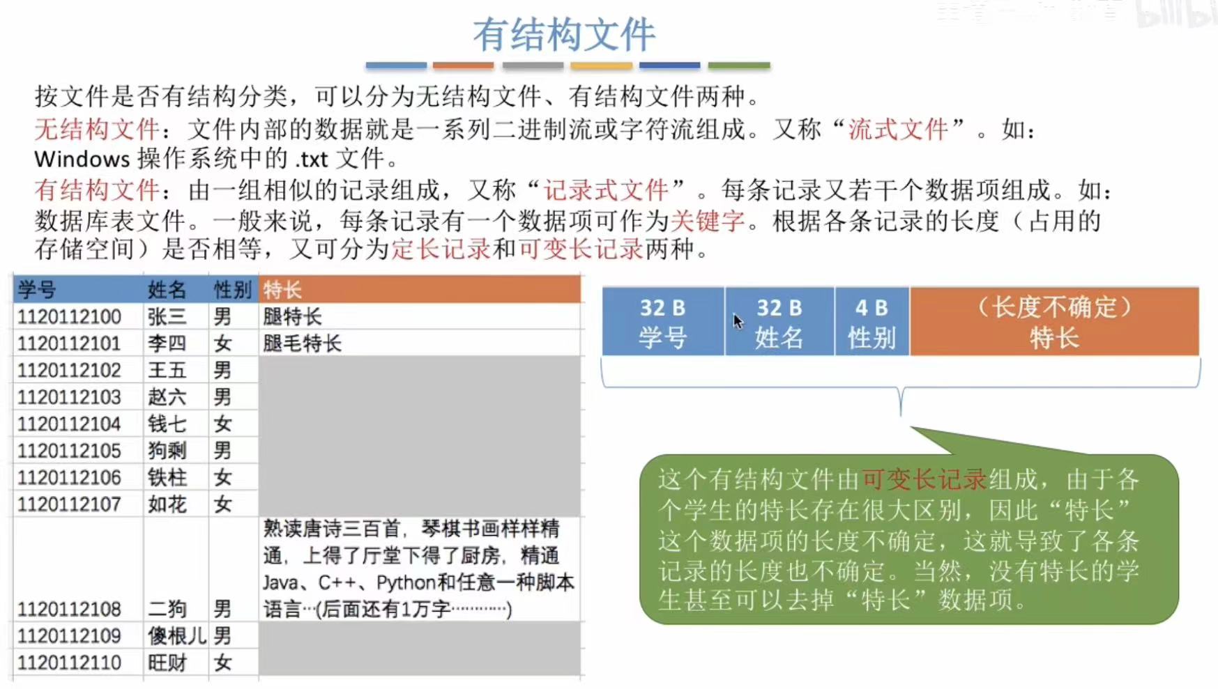 - 有结构文件=记录式文件:就类似于你建立了一个excel文件。