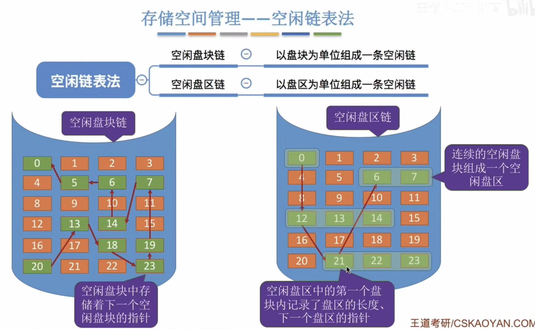 空闲块用指针链接在一起,很好地解决了空闲块分散的问题。