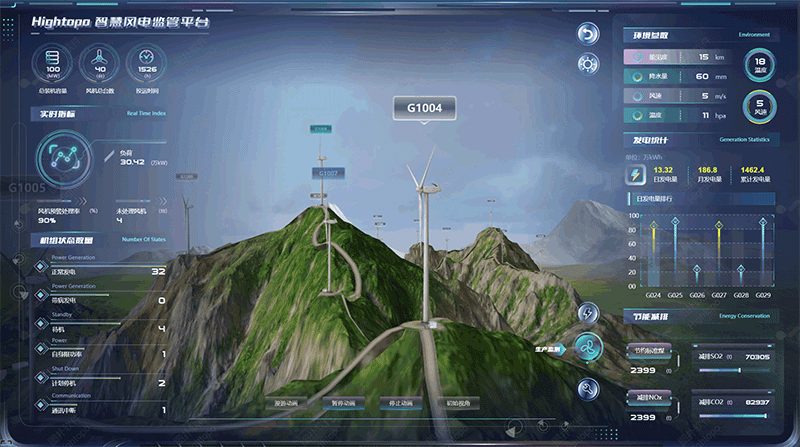 - 数据统计与展示:利用 HT for Web 的数字统计与图表组件,展示节约标准煤量、各类污染物减排量等数据。基于历史排放数据与实时监测数据,通过脚本计算节能减排成效,以直观的数字与图形化形式呈现,为风电场节能减排优化提供数据支撑。