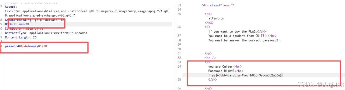 要求 password不是数字 / 数字字符串,但又要求和整数 404 相等。利用弱类型比较可轻松绕过,具体方法:
