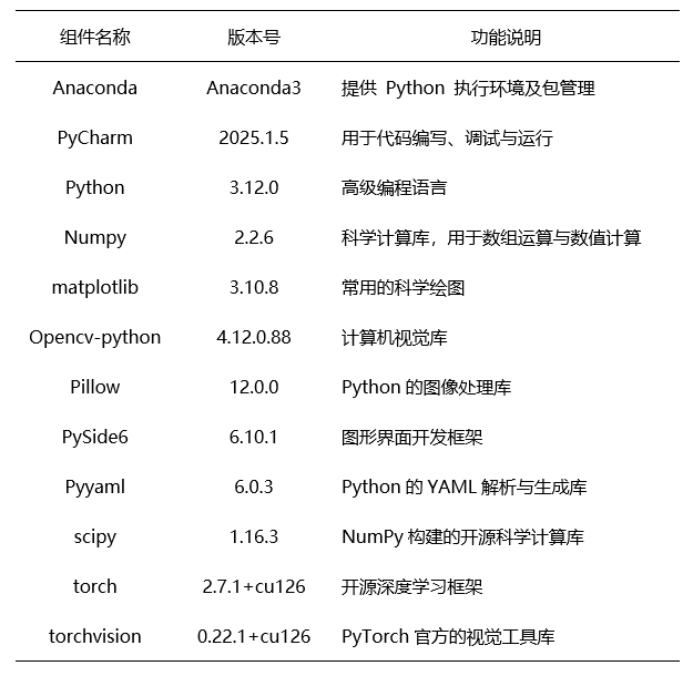 对本实验所需的各类软件及工具的基本信息进行了清晰汇总。
