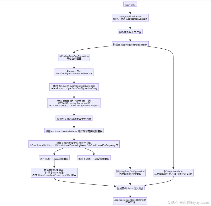 - [二、整体流程图:从 main 方法到自动配置完成](#二、整体流程图:从 main 方法到自动配置完成)