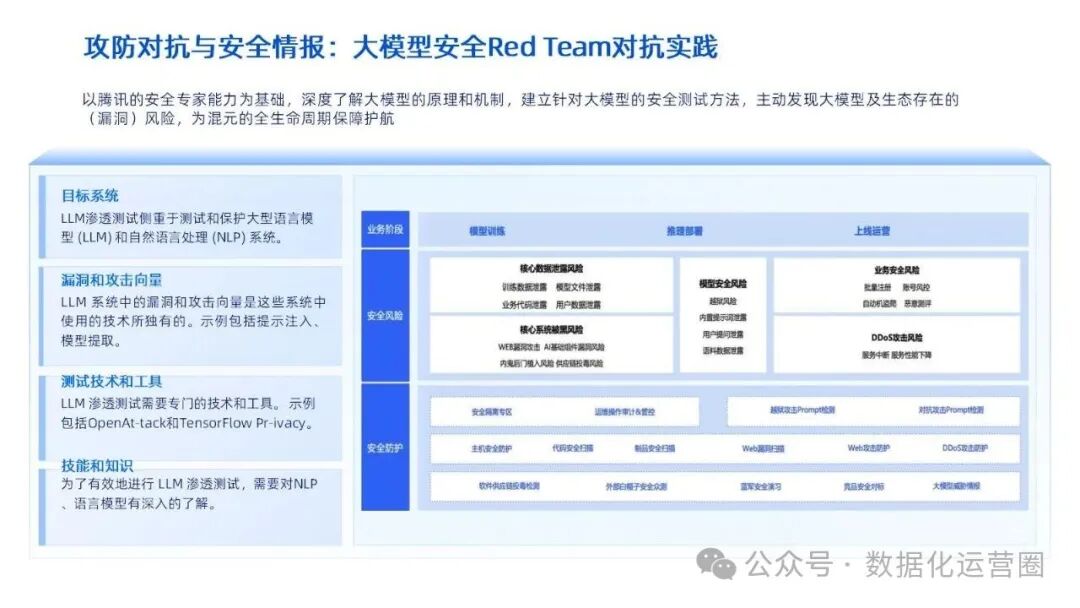 成立专业的红队(安全测试团队),模拟黑客攻击手法,每日对大模型进行越狱测试、提示注入攻击、工具投毒等模拟攻击。