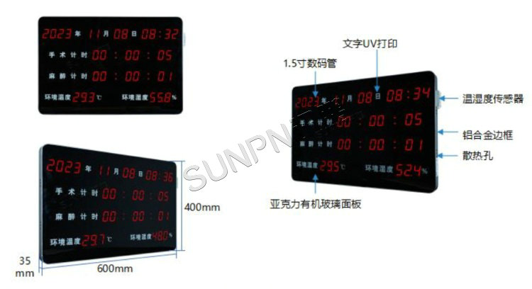 **手术室:**3联数字时钟(倒计/正计/总时),实时同步北斗时间,提升手术协调效率;