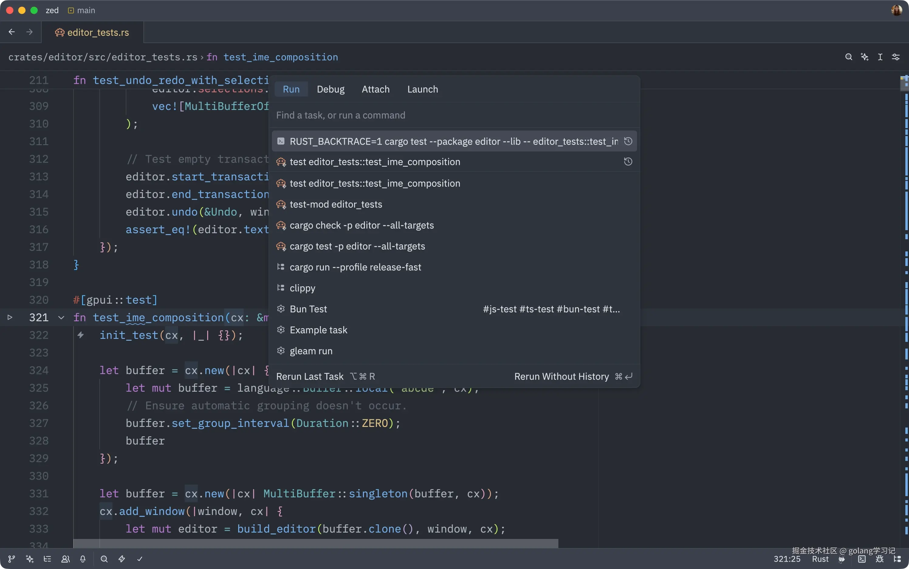 Zed 的任务系统(Tasks)支持临时编辑命令后立即运行,特别适合调试场景。