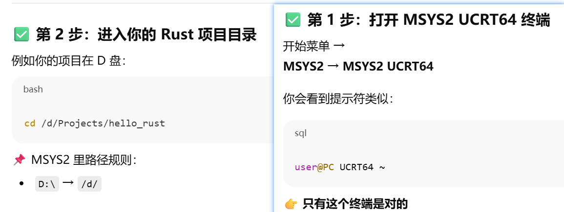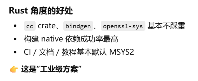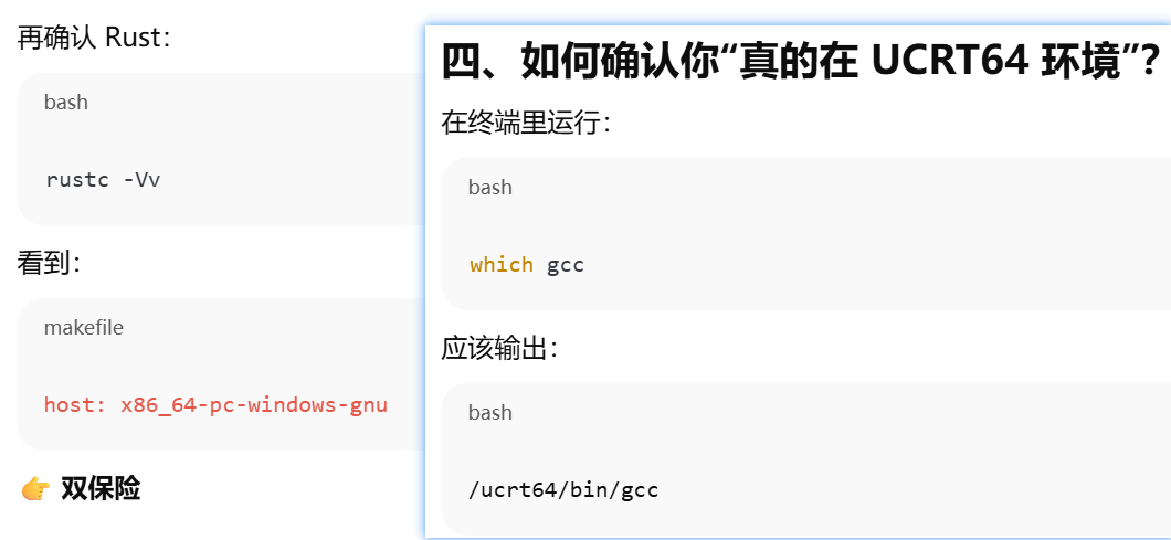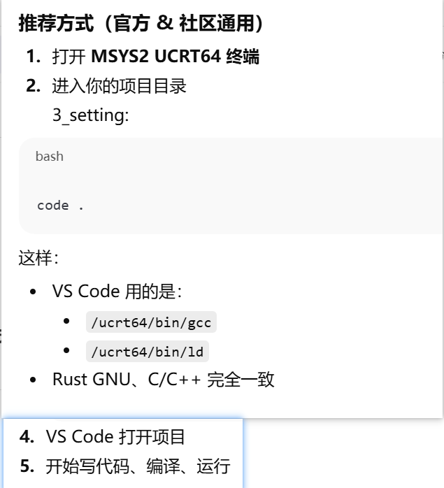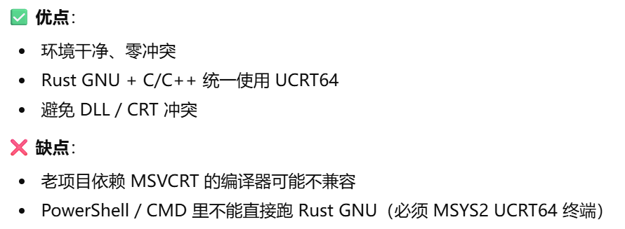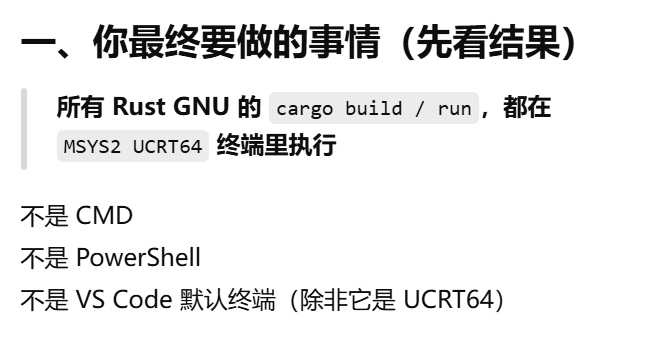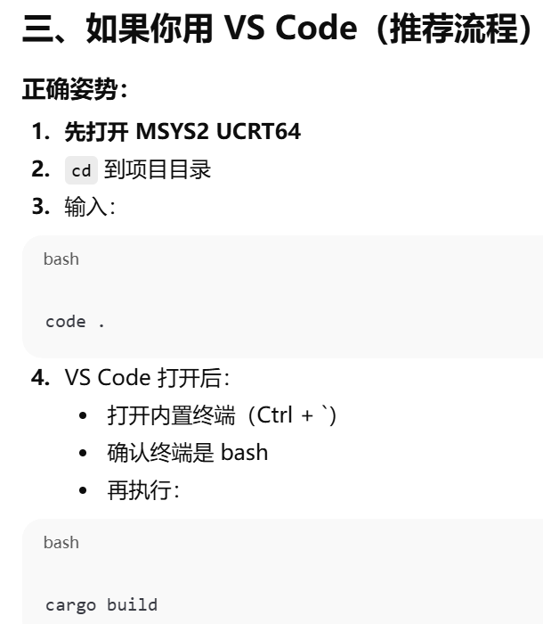 - [方案2 vscode c++ 用MinGW ,Rust 只在 MSYS2 里跑,打开MSYS2 UCRT64 终端进入项目目录,运行code . ->vscode终端 cargo build](#方案2 vscode c++ 用MinGW ,Rust 只在 MSYS2 里跑,打开MSYS2 UCRT64 终端进入项目目录,运行code . ->vscode终端 cargo build)