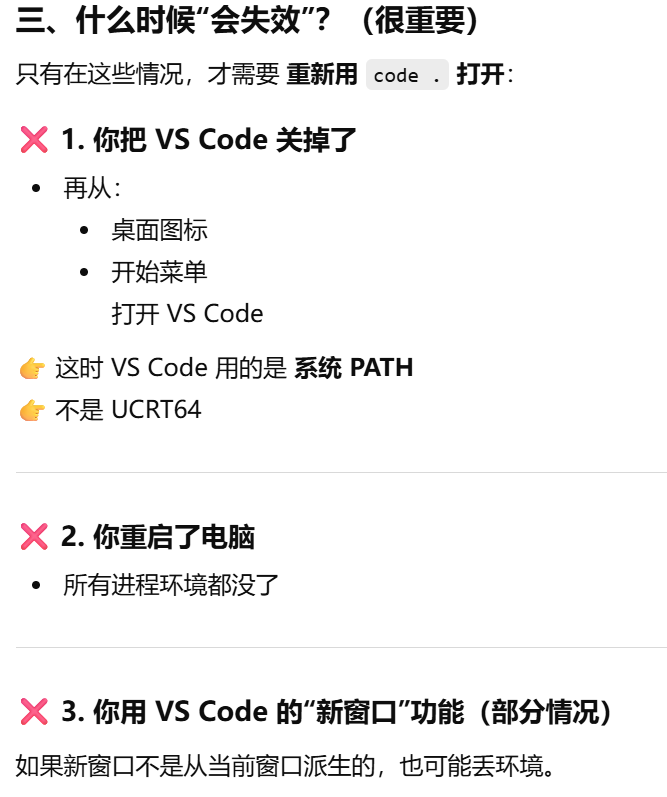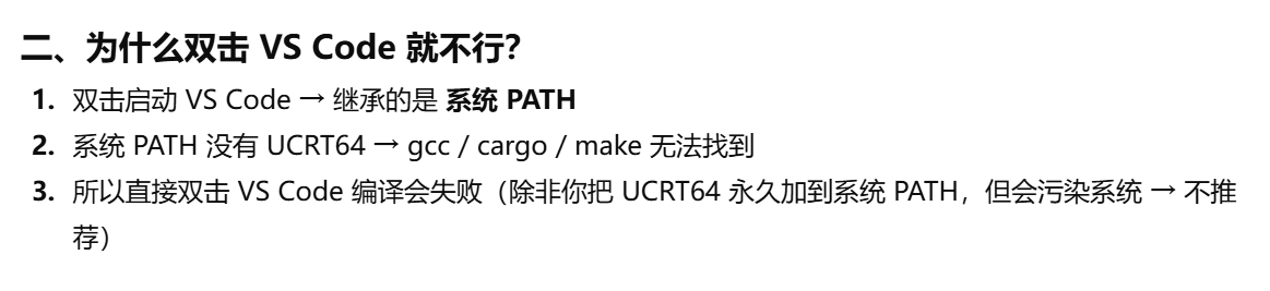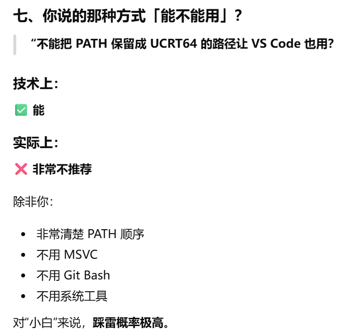 - [把 PATH 保留成 UCRT64 的路径让 VS Code 也用可行吗?不可以](#把 PATH 保留成 UCRT64 的路径让 VS Code 也用可行吗?不可以)