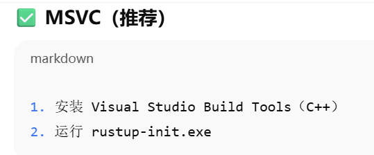 - [1. x86_64-pc-windows-msvc(官方推荐)Visual Studio Build Tools + rustup](#1. x86_64-pc-windows-msvc(官方推荐)Visual Studio Build Tools + rustup)