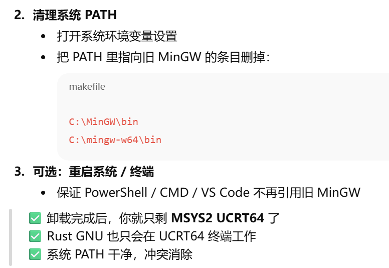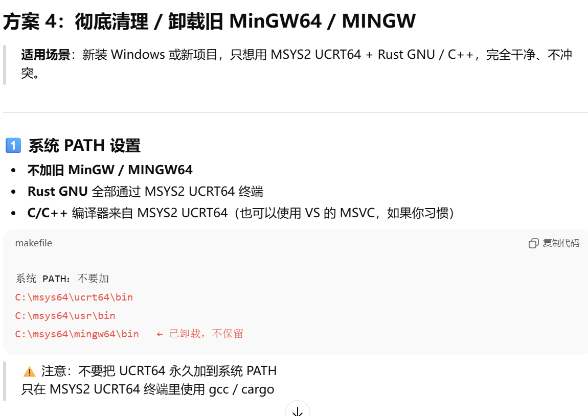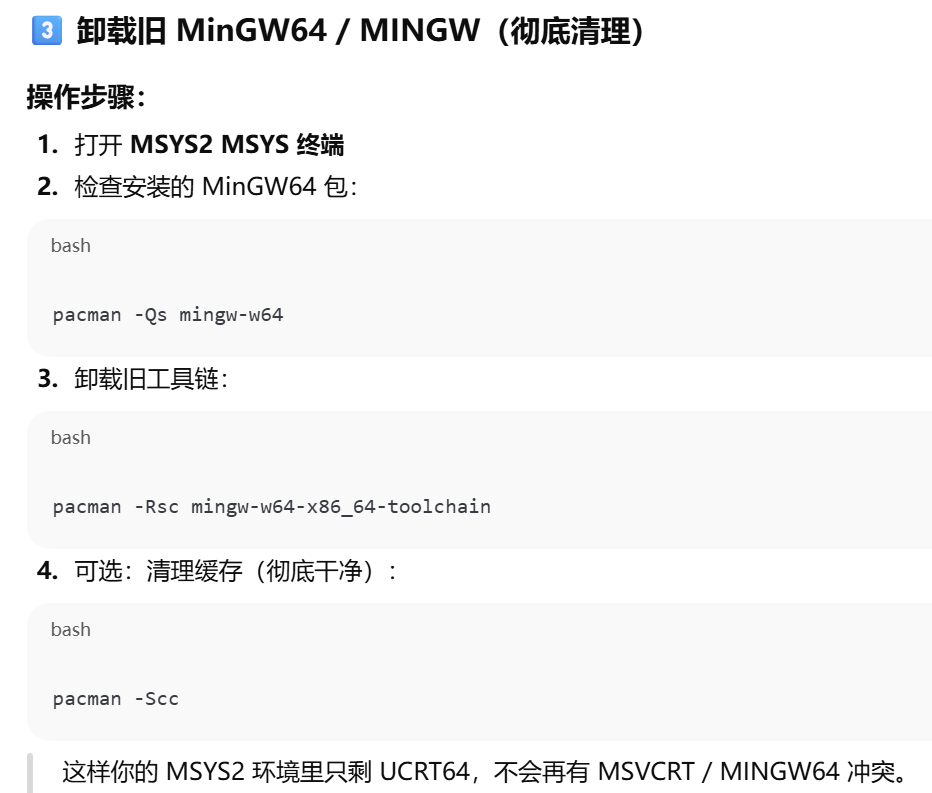 - [方案 4(彻底清理 / 卸载旧 MinGW64 / MINGW)](#方案 4(彻底清理 / 卸载旧 MinGW64 / MINGW))