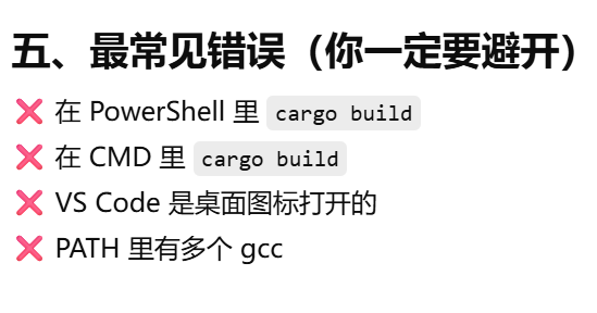 ❌ 不要在 PowerShell 里 build Rust GNU