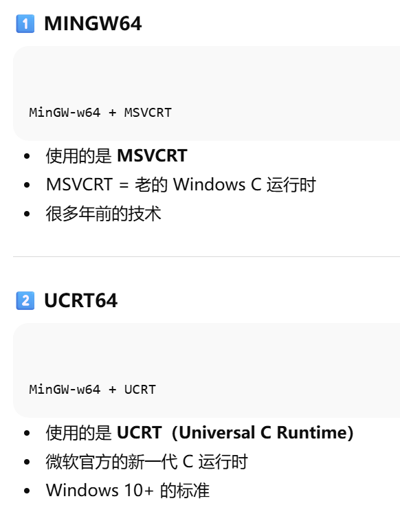 ucrtmingw64和mingw64的区别?