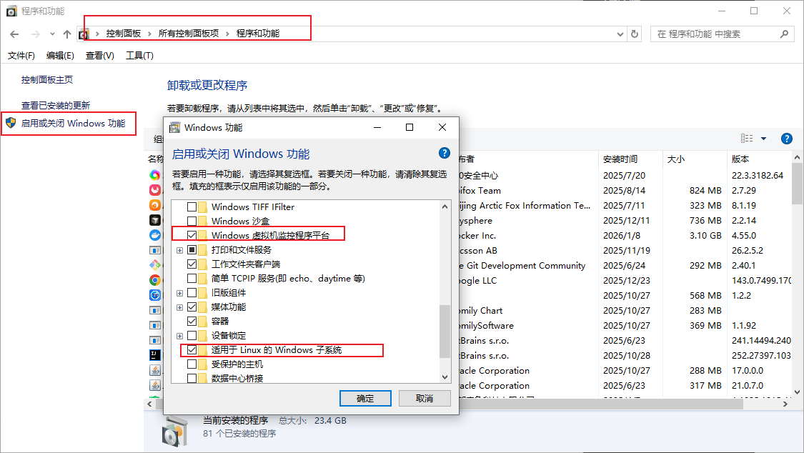 3.1 开启WSL 2相关Windows功能